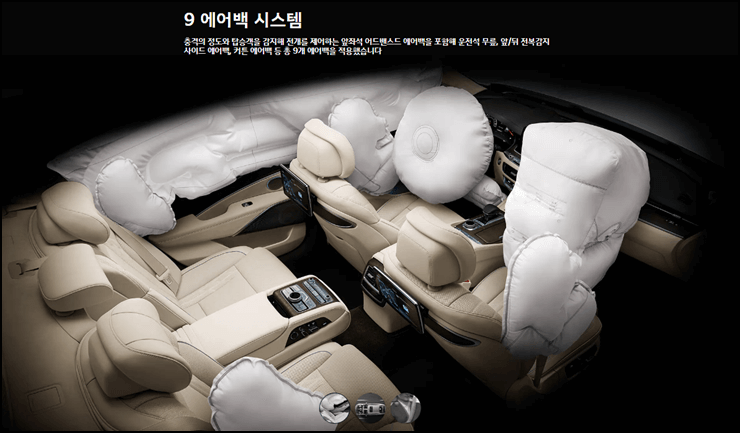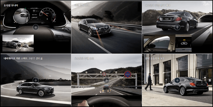 4) 다중 충돌방지 자동 제어 시스템 - 정면이나 측면 충돌로 인해서 에어백이 터질 경우 적절한 자동 제어로 2차 사고를 방지하는 기술입니다.
