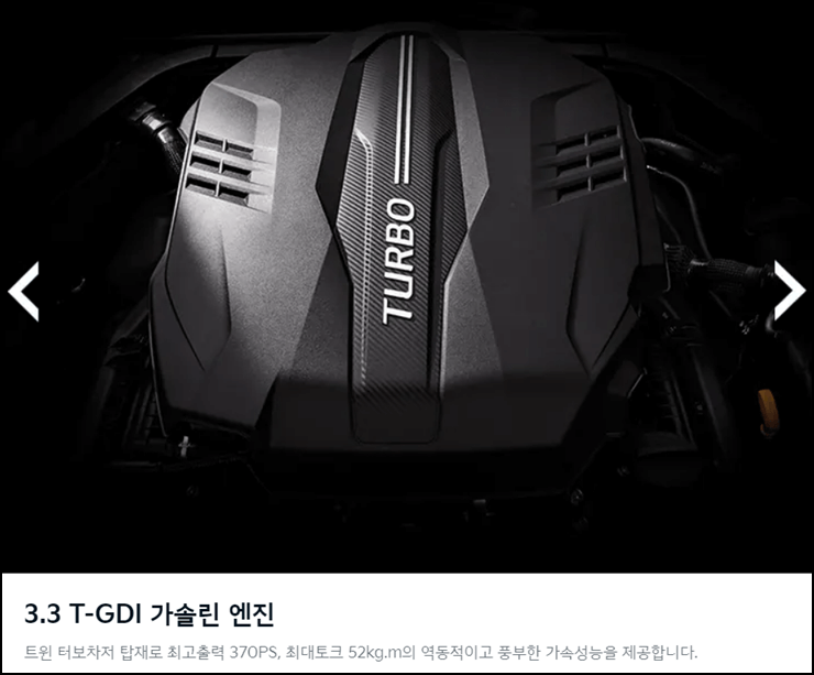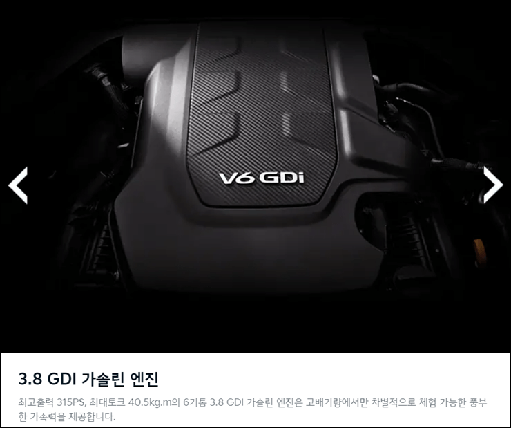 더뉴 K9 3.8 GDI 가솔린 엔진의 최고 출력은 315ps, 최대토크는 40.5kg.m으로 충분한 가속력을 제공합니다.