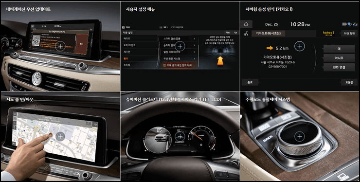 슈퍼비전 클러스터 12.3인치 풀사이즈 칼러 TFT LCD 창을 통해 사용자 친화적인 다양한 컨텐츠를 클러스터에 표시하여 운전을 더욱 안전하고 편리하게 도와주며, 조그 다이얼을 조작하여 인포테인먼트 시스템 및 각종 차량 설정 등을 쉽고 빠르게 변경할 수 있습니다. 게다가 뒷좌석에 있는 다기는 센터 암레스트는 편리하게 밀티미디어 기능에 더하여 시트 및 공조 시스템을 제어할 수 있게 만들어줍니다. 그리고 별도의 케이블이 없어도 스마트폰 충전이 가능한 무선충전시스템이 있기 때문에 더욱 깔끔한 디자인을 유지할 수 있게 만들어 주기도 합니다. 선이 이곳저곳에 막 연결되어 있으면 보기에도 좋지 않은 게 사실이니까요.