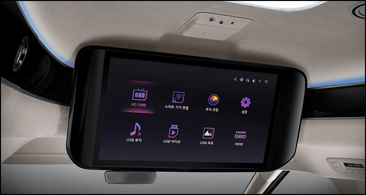 기아 카니발 하이리무진은 뒷 좌석에 있는 사람들의 편의를 위해 21.5인치 스마트 모니터가 장착되어 있습니다. 스마트 모니터는 고화질 DMB, 스마트 기기 연결, 조명 설정, 음악 설정, 영상 설정 등 여러 가지 기능이 탑재되어 있습니다.