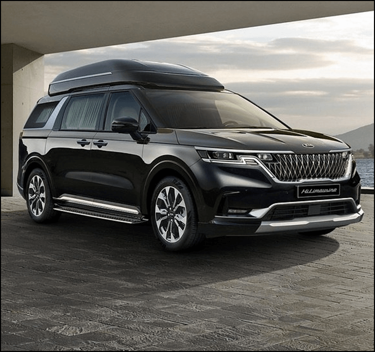 기아 카니발 하이리무진 전측면 모습입니다. 4세대 카니발에 하이루프가 추가된 모습입니다. 뭔가 웅장한 느낌입니다.