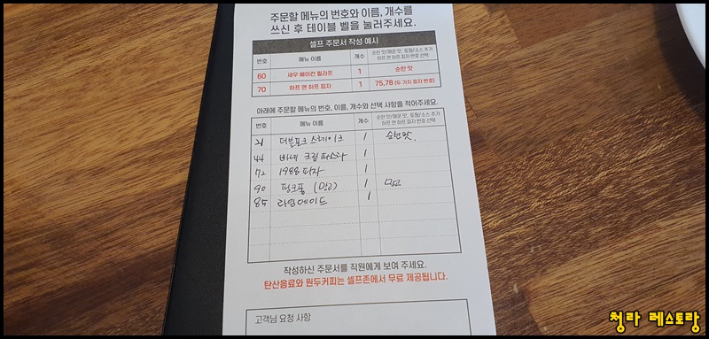 시장이 반찬이라고 저랑 집사람이랑 은지랑 모두 배가 고픈 상황이었기 때문에 무슨 음식이 나와도 맛이 있겠지요. 은지는 스테이크를 먹을 생각에 벌써부터 들떠 있었습니다. 저희가 시킨 메뉴는 아래와 같습니다