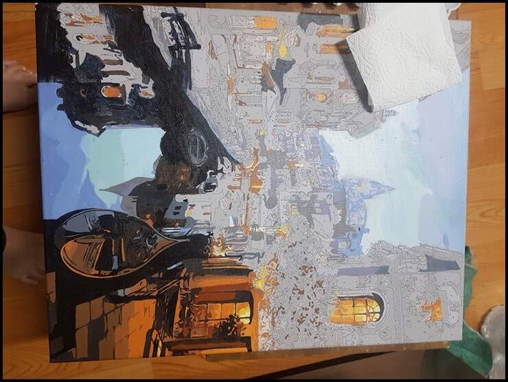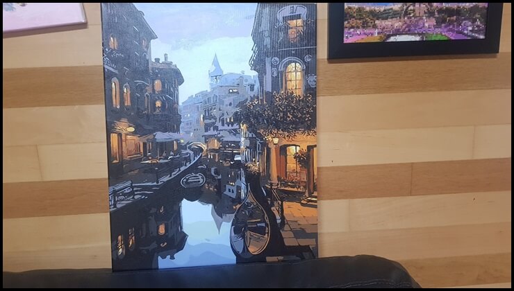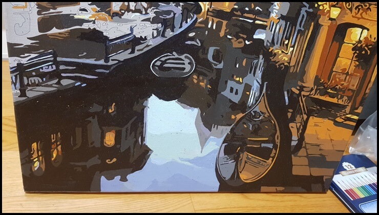 위의 사진이 어떻게 변했는지 아래의 사진에서 확인하시면 되겠습니다. 완전 다른 그림이 되었습니다. 명화그리기 베네치아가 거의 완성되어 가고 있습니다. 집사람이 이거 다 만들고 나면 다음번에는 꽃 피포페인팅을 사달라고 하더라고요. 그만큼 재미가 있나 봐요. 이런 건 사실 만들고 나면 완성작품을 볼 때 엄청 뿌듯하지요. 저도 나무로 뭘 만드는 diy를 참 좋아하는데요 노력해서 무언가를 다 만들고 나면 그 뿌듯함과 성취감 때문에 또다시 이것도 만들고 또 저것도 만들다 보면 기술도 늘고 자연스레 완성품의 질도 같이 높아지기 때문에 틈만 나면 또 뭘 만들고 싶어서 안달이 나게 됩니다. 그게 바로 diy의 매력인 것 같습니다.